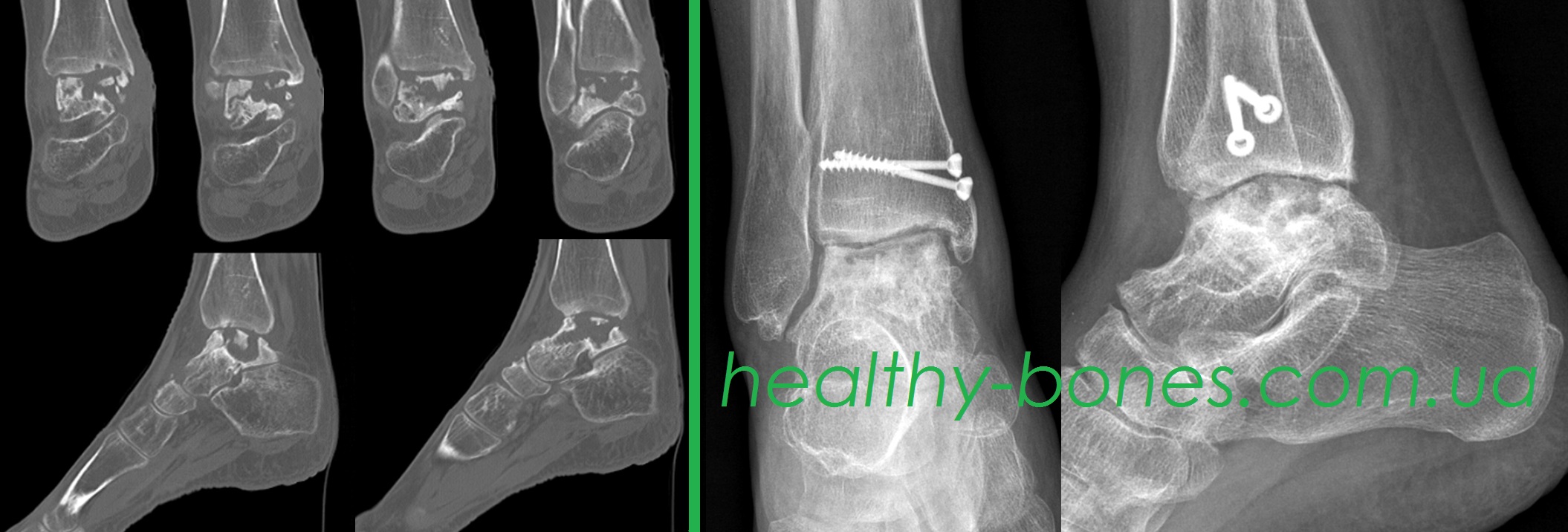 Жінка звернулася до нас з приводу аваскулярного некрозу правої таранної кістки. У 2018 році отримала осколковий перелом правої таранної кістки. У Київському інституті травматології пацієнтці було виконано остеосинтез перелому. Після операції зберігалися сильні болі в області гомілковостопного суглоба. Через 8 місяців після операції у неї був діагностований аваскулярний некроз таранної кістки і запропоновано виконати артродез гомілковостопного суглоба. Пацієнтка консультувалася в клініках Бельгії, Австрії, Німеччини та США і у всіх клініках їй пропонували виконати артродез суглоба або поставити штучний суглоб і говорили про те, що нормально вона ходити вже не зможе.