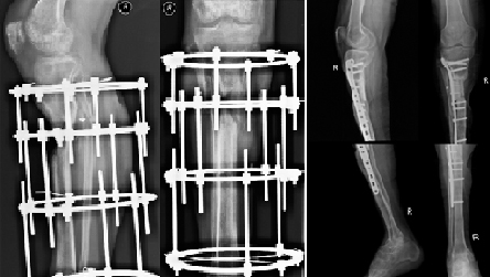 Мужчина обратился за помощью по поводу дефекта правой большеберцовой кости и укорочения правой голени до 17 см. Дефект большеберцовой кости образовался в результате ранения. Пациенту, в связи с невозможностью восстановить длину конечности было предложено выполнить ампутацию на уровне бедра.